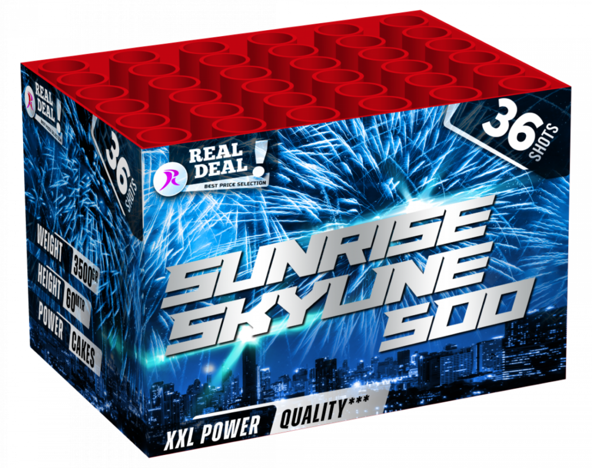Wat een spektakel geeft deze nieuwe grote 500 grams-cake! Met diverse effecten zoals crackling wolken, gouden palmen en multicolour. Topper!